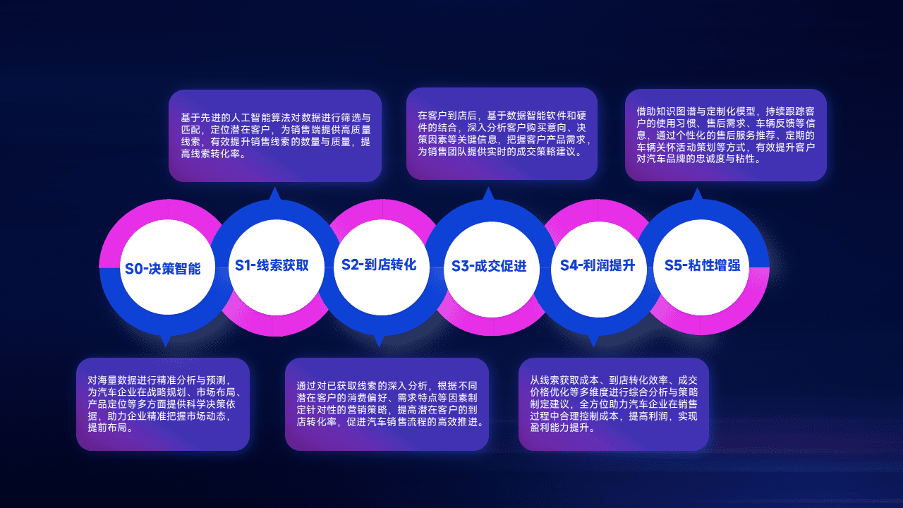 通过拓宽潜在客户来源、、、优化线索分配并提高到店转化率,,以增强销售效率。。同时,,,利用线索数据不断优化分析模型,,有效提升转化率,,扩大营销影响力。。。。